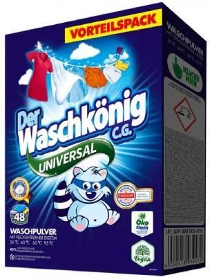 Uniwersalny oraz bardzo skuteczny proszek do prania Der Waschkönig C.G. o pojemności 2,88 kg.