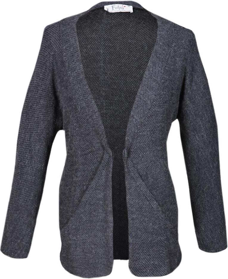 Luźne wdzianko. Rękaw długi typu kimono. Na przodzie pomysłowe cięcia, w których znajdują się kieszenie. Bez zapięcia. Uszyte ze sweterkowej dzianiny, o bardzo ciekawej strukturze z widocznymi supełkami. Ciekawe uzupełnienie wielu zestawów ubrań na co dzień. Doskonale komponuje się z jeansami lub jako dodatek do stroju wizytowego składającego się z czarnej spódnicy lub spodni i białej bluzki. PRODUKT POLSKI kupując polskie marki wspierasz rozwój rodaków. Polska rośnie w siłę.