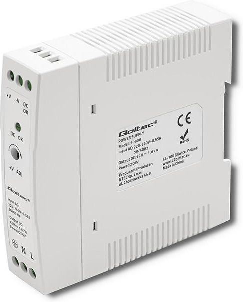 Wielobranżowe zastosowanie Zasilacze na szynę DIN marki Qoltec są przydatnym elementem systemów automatyki, sterowania maszynami, technice oświetleniowej oraz elektronice przemysłowej w których istotny jest rozmiar urządzeń zasilających oraz dostosowanie ich do ograniczonej przestrzeni. Kompaktowe wymiary Ułatwieniem w zorganizowaniu przestrzeni do montażu zasilacza jest jego wersja SLIM - niewielkie rozmiary pozwolą na bezproblemową instalację, a ergonomiczny kształt z łatwością dopasuje się do wybranej szafy elektrycznej. Dopasuj swój model Należy koniecznie obliczyć pobór mocy wszystkich obsługiwanych przez niego urządzeń. Suma pozwoli na określenie minimalnej mocy, która zapewni działanie wszystkich podzespołów w systemie zasilanych z konkretnego zasilacza DIN. Warto pamiętać, by przy wyborze zasilacza zapewnić zapas ok. 10-15% mocy dla bezpiecznego funkcjonowania podpiętych do niego sprzętów. Dbamy o twoje bezpieczeństwo Zasilacze na szynę DIN wyprodukowano z materiałów najwyższej jakości, aby zapewnić Ci niezawodne zasilanie w każdej sytuacji. Dodatkowo posiada zabezpieczenia przeciw: przepięciom to ochrona przed zbyt niskim lub zbyt wysokim napięciem wejściowym, przeciążeniom to ochrona przed przeciążeniem każdej z linii zasilających, zwarciom to ochrona przed zwarciem w obwodzie zasilacza. UWAGA: Do użytku tylko z urządzeniem o zgodnych parametrach wskazanych w specyfikacji tego urządzenia.