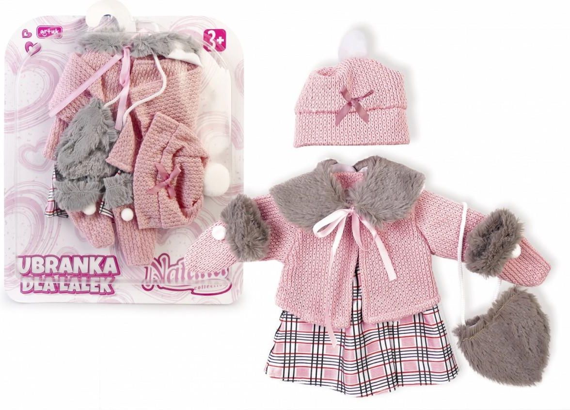 W zestawie:- czapka- kurteczka- sukienka- futerko- torebka- rękawiczki Pasuje na lalkę do 40 cm Pozostałe informacje:wym. opk: 25,5 x 32,5 cmwiek: 3+