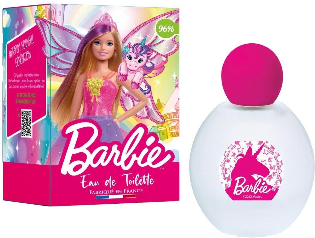Odkryj magiczną i kolorową wodę toaletową słynnej lalki Barbie.Magiczny świat jednorożców i wróżek sublimuje wodę toaletową Barbie dla małych księżniczek w wieku od 5 lat.Uroczy zapach opracowany specjalnie dla delikatnej skóry dzieci.Piękny kwiatowo-owocowy zapach.Nuty zapachowe:Nuty głowy: Owocowy akord czerwonej jagody i czarnej porzeczkiNuty serca: Kwiatowy akord piwonii, drzewa cedrowego i konwaliiNuty baza: Gourmandowy akord wanilii i praliny