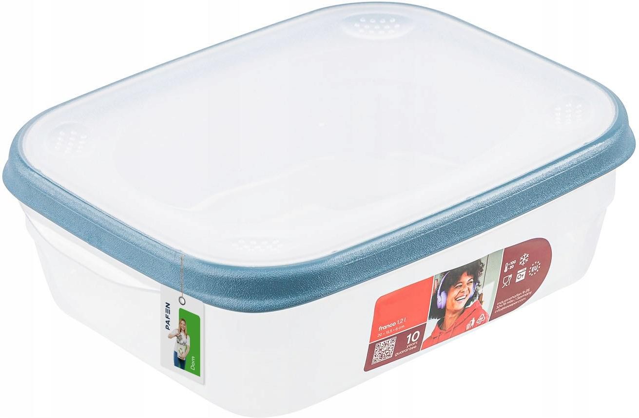 FRANCO POJEMNIK NA ŻYWNOŚĆ PROSTOKĄT 1,2L KEE-1079368000000 Kompaktowy pojemnik Keeeper Franco to praktyczne rozwiązanie do przechowywania żywności w domu, w pracy czy w podróży. Hermetyczne wieczko zabezpiecza przed wyciekami i utrzymuje świeżość. Transparentny korpus pozwala łatwo zobaczyć, co jest w środku. Pojemnik jest bezpieczny dla żywności, można go mrozić, myć w zmywarce, a bez pokrywki — podgrzewać jedzenie w mikrofalówce. Zalety pojemnika pojemność 1,2 L – idealny na małe porcje, dodatki szczelne zamknięcie – nic nie wycieknie transparentny – widać zawartość dopuszczony do mrożenia, mycia w zmywarce i użycia bez pokrywki w mikrofalówce prosty, uniwersalny design Praktyczne zastosowania Do lunchu / przekąsek – orzechy, owoce, warzywa, dipy, salsy Do pracy / szkoły – dodatki do głównego dania, przyprawy, jogurty Do lodówki / zamrażarki – przechowywanie żywności, którą chcesz później rozmrozić Na wycieczki / w podróży – śniadanie lub przekąska bez potrzeby użycia folii