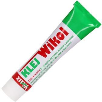Klej Wikol - mieszanina wodnej dyspersji żywicy poliwinylowej z dodatkiem środków uszlachetniających. Tuba metalowa, waga netto: 45g. Klej przeznaczony do klejenia na zimno drewna z drewnem, drewna z tworzywami sztucznymi typu UNILAM, drewna z tkaninami oraz papieru. Klejone powierzchnie należy dokładnie oczyścić, a w przypadku tworzyw sztucznych przetrzeć papierem ściernym. Klej nałożyć cienką warstwą na jedną powierzchnię. Pozostawić na 4 minuty do podeschnięcia, następnie ścisnąć z drugim elementem. Pełną wytrzymałość wiązanie otrzymuje po 24-ech godzinach. Umieszczony w metalowej tubie z nakrętką.