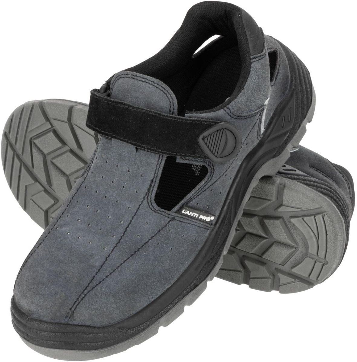 MATERIAŁ: Wierzch: skóra zamszowa. Podszewka: dzianina siatkowa. Wyściółka: wymienna. Podeszwa: poliuretan dwugęstościowy o właściwościach antypoślizgowych (podłoże z płytek ceramicznych pokryte gliceryną), odporna na olej napędowy, głęboki bieżnik zwiększa przyczepność do podłoża KAT. BEZPIECZEŃSTWA: S1 FO SR Podnosek stalowy Właściwości antyelektrostatyczne Absorpcja energii w części piętowej Zamknięty obszar pięty Elementy odblaskowe NORMA: EN ISO 20345:2022 Pliki: l30618.pdf Parametry: Rozmiar: 40 Marka: LAHTI PRO