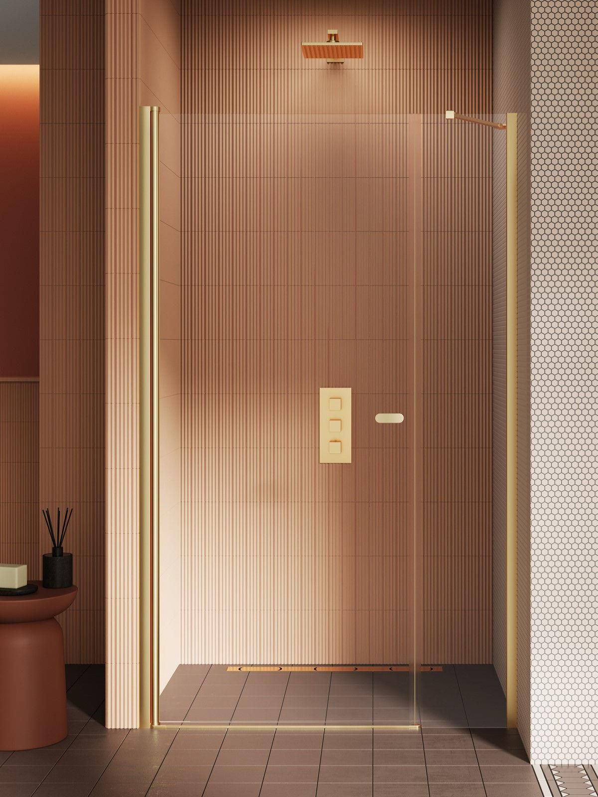 Drzwi wnękowe New Soleo Gold Brushed Model New Soleo Gold Brushed posiada eleganckie, złote detale o szczotkowanym wykończeniu. Ten wyjątkowy kolor złota spotka się z uznaniem najbardziej wymagających użytkowników. Charakterystyczną cechą kolekcji New Soleo jest zawias kolumnowy umożliwiający wahadłowe otwieranie drzwi. Zalety drzwi wnękowych New Soleo Gold Brushed: Stylowy uchwyt Zaokrąglony uchwyt znakomicie pasuje do kształtu kabiny, dzięki czemu produkt doskonale prezentuje się zarówno w łazience o tradycyjnym, jak i nowoczesnym wystroju. Zawiasy kolumnowe Zawias, który ma formę kolumny, zapewnia szerokie i wygodne wejście. Posiada funkcję unoszenia, która zapobiega zużywaniu się uszczelki. Skrzydła drzwi otwierają się zarówno na zewnątrz, jak i do środka. Praktyczne wykończenie Wysokiej jakości wspornik zapewnia solidną konstrukcję kabiny. Nowoczesna forma wykonania harmonizuje z czystą linią szklanych powierzchni. Montaż z listwą progową lub bez Listwa progowa kabiny prysznicowej jest elementem pomocnym w zachowaniu lepszej szczelności, jednak jej montaż nie jest koniecznością. Decydując się na wariant montażu bez listwy należy zastosować dolną uszczelkę drzwi z przedłużonym listkiem, aby pomiędzy drzwiami a podłogą nie pozostała szczelina. Listwa progowa oraz dodatkowa uszczelka znajdują się w zestawie z pozostałymi częściami kabiny prysznicowej. ↓ Aby dowiedzieć się więcej kliknij w obrazek poniżej ↓ POWŁOKA ACTIVE SHIELD 2.0 Powłoka w nowej technologii Active Shield 2.0, to powłoka uszlachetniająca powierzchnie szkła, nakładana mechanicznie i utrwalana promieniowaniem UV i IR. Wydłuża to jej żywotność nawet do dziesięciu lat pod warunkiem eksploatacji zgodnie z zaleceniami. Powłoka Active Shield 2.0 zapobiega osadzaniu się kropli wody, tworzeniu nacieków z kamienia, czy zanieczyszczeń ze środków do codziennej higieny. Powłoki ochronne pozwalają na generowanie oszczędności poprzez mniejsze zużycie środków czyszczących, a tym samym pozytywnie wpływając na środowisko. Aby jak najdłużej cieszyć się atrakcyjnym wyglądem kabiny, rekomendujemy stosowanie dedykowanych środków do pielęgnacji kabin: Impregnat do powłok Active Shield oraz preparat do czyszczenia kabin. Oba środki są bardzo wydajne przez co pozostają w zasięgu ręki przez długi czas. Dodane w produktach powiązanych poniżej strony. New Soleo Gold Brushed drzwi wnękowe wahadłowe (otwierane na zewnątrz i do środka) L/P 150 cm wersja ze wspornikiem skośnym SZKŁO CZYSTE ACTIVE SHIELD 6 MM OPCJE NA INDYWIDUALNE ZAMÓWIENIE Uwaga! Wysyłki pobraniowe są realizowane do 5 dni od zamówienia