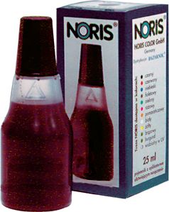 TUSZ NORIS 110S 25 ML CZERWONY - uniwersalny, wodny, do pieczątek ręcznych i samotuszujących z gumową lub polimerową płytką stemplującą- buteleczka z końcówką ułatwiającą nasączenie poduszek oraz nakrętką w kolorze tuszu