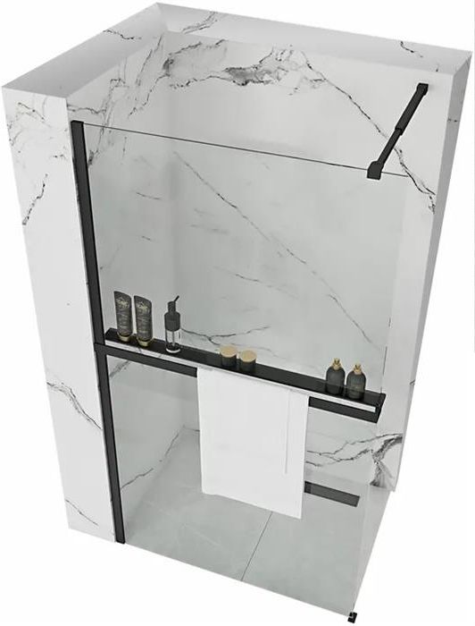 Prezentujemy Państwu nowoczesne i niezwykle funkcjonalne rozwiązanie -Ścianka prysznicowa 110 cm z wieszakiem oraz półką Evo Rea Black Mat