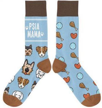 Bycie psią mamą wiąże się z licznymi obowiązkami, ale też z całą masą przyjemności. Jedną z nich jest możliwość noszenia tych skarpetek. To wzór zarezerwowany wyłącznie dla psich mam! Noś je z dumą albo podaruj osobie, która na to zasługuje. Życie jest za krótkie, żeby nosić nudne białe skarpetki …