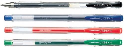 Długopis żelowy UNI UM-100 • transparentna obudowa pozwala śledzić poziom tuszu • tusz pigmentowy, wodoodporny i odporny na blaknięcie • pisze cienko i nie przerywa • metalowa końcówka • średnica kulki piszącej 0,5 mm • grubość linii pisma ok. 0,3 mm • wymienny wkład UMR-5