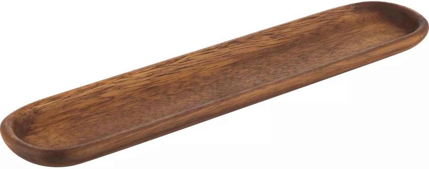 Deska do serwowania z drewna akacjowego, brązowa, 37x8x2 cm APS 792 Deska do serwowania z drewna akacjowego to elegancki i praktyczny element wyposażenia każdej kuchni lub jadalni. Wyróżnia się naturalnym wyglądem, trwałością oraz kompaktowym rozmiarem. Idealnie sprawdzi się do podawania serów, przekąsek lub wędlin, zarówno podczas rodzinnych spotkań, jak i profesjonalnych przyjęć. Cechy charakterystyczne Drewno akacjowe – deska wykonana jest z naturalnego drewna akacjowego, znanego z twardości i odporności na wilgoć, co przekłada się na jej długowieczność. Olejowana powierzchnia – zabieg olejowania zabezpiecza deskę przed wchłanianiem zapachów i wilgoci, a jednocześnie podkreśla jej piękny, brązowy kolor. Kompaktowy rozmiar – dzięki wymiarom 37x8 cm deska jest poręczna i wygodna w użytkowaniu, doskonale nadaje się do serwowania przystawek nawet na niewielkich stołach. Specyfikacja produktu Materiał: drewno akacjowe – zapewnia wytrzymałość i naturalny wygląd. Kolor: brązowy – elegancka barwa, która podkreśli wygląd serwowanych potraw. Wymiary: 37 x 8 cm – praktyczne proporcje do serwowania różnego rodzaju przekąsek. Wysokość: 2 cm – stabilna i solidna konstrukcja. Zastosowanie produktu Ta deska do serwowania świetnie sprawdzi się zarówno w domu, jak i w restauracji. Możesz na niej elegancko podać sery, wędliny, pieczywo czy owoce. Dzięki naturalnemu wykończeniu prezentuje się stylowo na każdym stole, a jej kompaktowy rozmiar ułatwia przenoszenie i przechowywanie. Budowa i funkcjonalność Deska została wykonana z jednego kawałka drewna akacjowego, co zapewnia jej trwałość i odporność na uszkodzenia. Olejowana powierzchnia chroni przed wilgocią i ułatwia utrzymanie czystości. Brązowy kolor jest uniwersalny i pasuje do wielu aranżacji stołu. Dlaczego warto wybrać ten produkt? Deska do serwowania z drewna akacjowego to połączenie estetyki i funkcjonalności. Dzięki naturalnemu materiałowi i starannemu wykończeniu będzie praktyczną i stylową ozdobą każdego stołu. Idealnie nadaje się do codziennego użytku, jak i na specjalne okazje. Decydując się na ten produkt, wybierasz trwałość, wygodę oraz ponadczasowy design.
