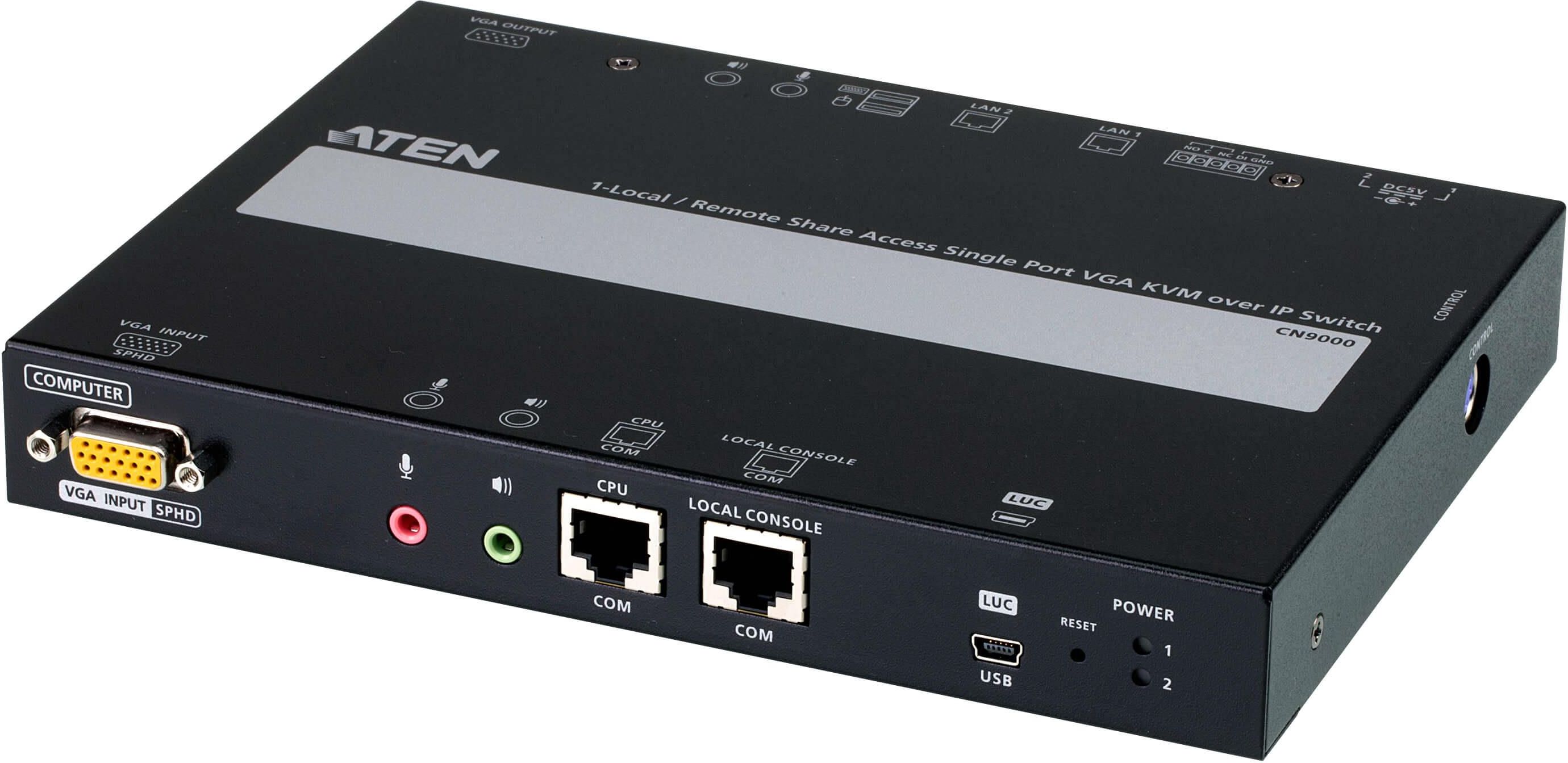 Jednoportowy przełącznik VGA KVM over IP ATEN CN9000 1-Local-Remote Share Access Przełącznik CN9000 VGA KVM over IP to niedrogie urządzenie over-IP, które zapewnia zdalny dostęp do cyfrowego obrazu, dźwięku i mediów wirtualnych za pomocą zdalnego sterowania z komputera PC lub stacji roboczej. …
