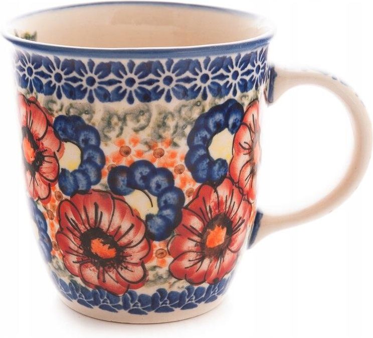 Kubek z ceramiki Bolesławiec oryginalny artystyczny wzór (10768) W niepowtarzalnym kubku z artystycznym wzorem z pracowni ceramiki w Bolesławcu herbata smakuje jeszcze lepiej. Jeśli chcesz jednym łykiem aromatycznej herbaty przenieść się na kwiecistą łąkę, codzienną porcję ulubionego naparu pij wyłącznie z tego unikalnego kubka z Bolesławca. Przepiękny kwiatowy wzór, ręcznie malowany precyzyjnym pędzelkiem przez utalentowaną malarkę, urzeknie każdego miłośnika natury! Ogromną zaletą kubka jest jednak nie tylko jego urokliwy wygląd, ale również funkcjonalność, na którą składa się między innymi ponadstandardowa pojemność (350 ml). Kubek, choć prezentuje się lekko i delikatnie, jak wszystkie wyroby z bolesławieckiej ceramiki, jest bardzo trwały i odporny na działanie wysokich temperatur. Możesz nawet bez obaw o uszkodzenie pięknych zdobień myć go w zmywarce! Wzór: 3A2 artystyczny (każdy produkt jest malowany ręcznie przez malarkę, więc może nieznacznie odbiegać od wzoru na zdjęciach) Produkt: 1 x kubek Wymiary wysokość: 10,5 cm średnica: 95 cm pojemność: 350 ml Materiał: ceramika Bolesławiec Użytkowanie można myć w zmywarce produkt dopuszczony do kontaktu z żywnością