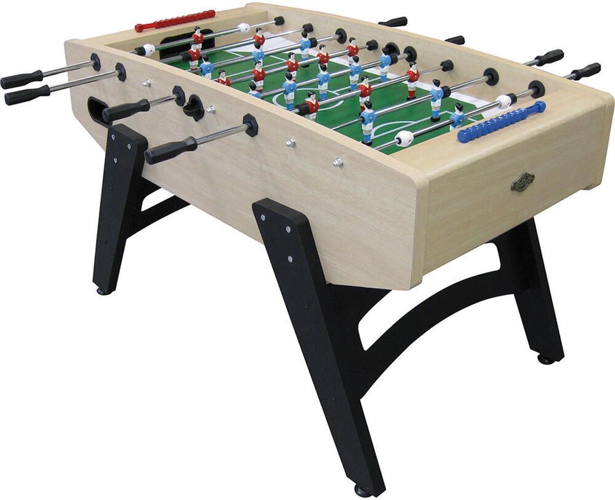 Stół do piłkarzyków Piłkarzyki Buffalo France Stół piłkarski Buffalo France jest następcą popularnego stołu piłkarskiego Babyfoot i jest idealny dla młodszych i starszych! Solidny stół posiada pole gry z płyty MDF o grubości 9 mm oraz aluminiowe figurki piłkarzy. Skośne nogi zapewniają optymalną stabilność. W zestawie znajdują się 4 korkowe piłki do piłki nożnej. Stół piłkarski Buffalo France Wymiary: 143,5 x 75 x 91 cm Zielone pole gry 9 mm MDF Ręczny licznik punktów Waga: ok. 58 kg Średnica piłek: 35 mm Nie nadaje się do użytku komercyjnego