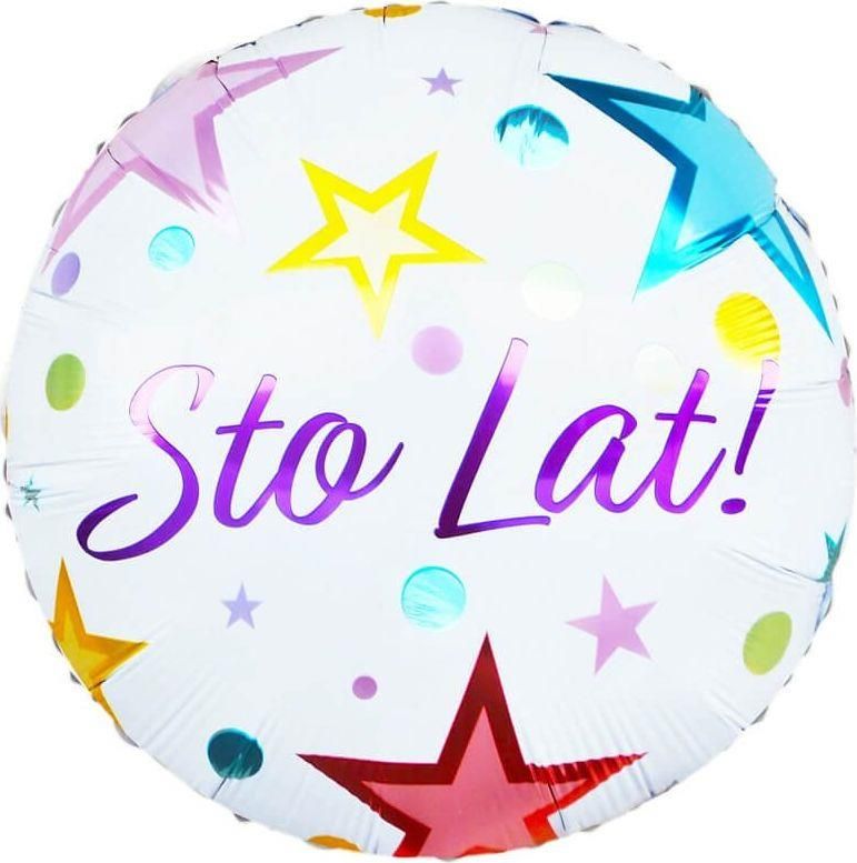 Balon foliowy Sto Lat, 18 cali Wymiar balonów w calach: 18 Wymiar balonów w centymetrach: ok. 46 cm Nadruk: liczba 18, kolorowe gwiazdki i groszki. Balony są przeznaczone do napełnienia helem. Napełnienie ich powietrzem spowoduje, że balony nie będą się unosić. W opakowaniu znajduje się 1 balon. Balony nie są napełnione helem. Rok wydania: 2022 Oprawa: blister