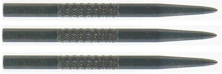 Groty stalowe Bull's Knurled Grip Points Black Stalowe groty holenderskiej marki Bull's w kolorze czarnym z radełkowanie w środkowej części.Przeznaczone do wymiany z użyciem specjalnej maszynki.Długość 35mm [[en]]{{Bull's Knurled Grip Points Black}}