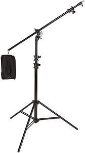 Bardzo wysoki, aluminiowy statyw typu boom, który może również pełnić rolę zwykłego statywu studyjnego. Dzięki solidnej konstrukcji zachowuje bardzo dobrą stabilność nawet przy dużym obciążeniu. Posiada amortyzatory powietrzne zabezpieczające przed nagłym obsunięciem się zamontowanego sprzętu. Wyposażony jest w trzpień dwustronny 16mm z gwintami 1/4" i 3/8" do mocowania w pionie lub poziomie różnych akcesoriów. Wysokość do ramienia: 220 cm. Długość ramienia: 280 cm. Udźwig: 4 kg Waga: 4,3 kg.