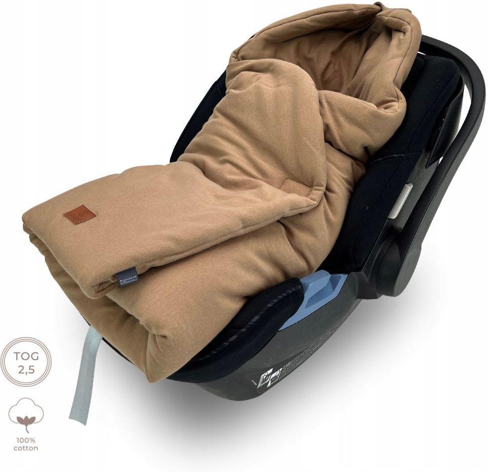 Kocyk do fotelika Cotton - Latte MAKASZKA Cieplutki kocyk/otulacz do fotelika. Doskonały do fotelika samochodowego 0-18kg, do leżaczka, bujaczka, do gondoli i łóżeczka. Idealny na wyjście ze szpitala po narodzeniu maluszka. Możesz otulić i zabezpieczyć przed chłodem maluszka podczas niesienia fotelika do samochodu i podczas jazdy, a kiedy wrócisz do domu ze śpiącym niemowlęciem nie musisz budzić go żeby zdjąć ciepłe ubranko, tylko odkrywasz boki otulacza i odpinasz kapturek. Kocyk obustronnie wykonany z mięciutkiej i delikatnej dzianiny przyjaznej delikatnej skórze Twojego Maleństwa ze 100% bawełny. W środku kocyk wypełniony jest antyalergiczną, lekką, silikonową włókniną zapewniającą ciepło. Otulacz do fotelika wyposażony jest w otwory na trzy i pięciopunktowe pasy bezpieczeństwa. Długie pionowe otwory zabezpieczone rzepem pomogą dopasować kocyk do każdego fotelika. Zapinany jest na szeroki rzep z dużym obszarem regulacji, a w górnej części posiada zapinany kapturek, który otula i chroni główkę. Otulacz do fotelika można skompletować z różnymi produktami marki Makaszka tworząc niepowtarzalny, bajecznie kolorowy Świat Twojego Maluszka. Doskonale też sprawdza się w formie stylowego prezentu dla małych pociech naszych przyjaciół, na baby shower i każdą inną miłą okazję. Kocyki Makaszka są szyte ręcznie w Polsce z najwyższą starannością i dbałością o szczegóły z tkanin najwyższej jakości dając długoletnią przyjemność z użytkowania. Dedykowany Maluszkom w wieku od 0 do 9 miesięcy. wymiary: 125×95 cm (+/-2 cm) skład: obustronnie 100% bawełna najwyższej jakości posiadająca Certyfikat OEKO-TEX 100 klasa I. wypełnienie: antyalergiczna, oddychająca włóknina silikonowa, która nie zmienia swojej struktury podczas prania i użytkowania. Wypełnienie wewnątrz jest wszyte do tkanin zewnętrznych, dzięki temu nie przemieszcza się podczas użytkowania i w praniu. sposób prania: prać w temp. 30°C, nie suszyć w suszarce bębnowej, prasować żelazkiem ustawionym na minimalną temperaturę. W wyniku użytkowania, częstego prania, czy wystawiania na działanie promieni słonecznych produkty mogą ulec naturalnemu zużyciu, tkanina może się pilingować lub zaciągnąć, a kolory mogą stracić intensywność. Tego typu zużycie nie stanowi podstawy do reklamacji. Produkt wysyłamy w ciągu 48H!