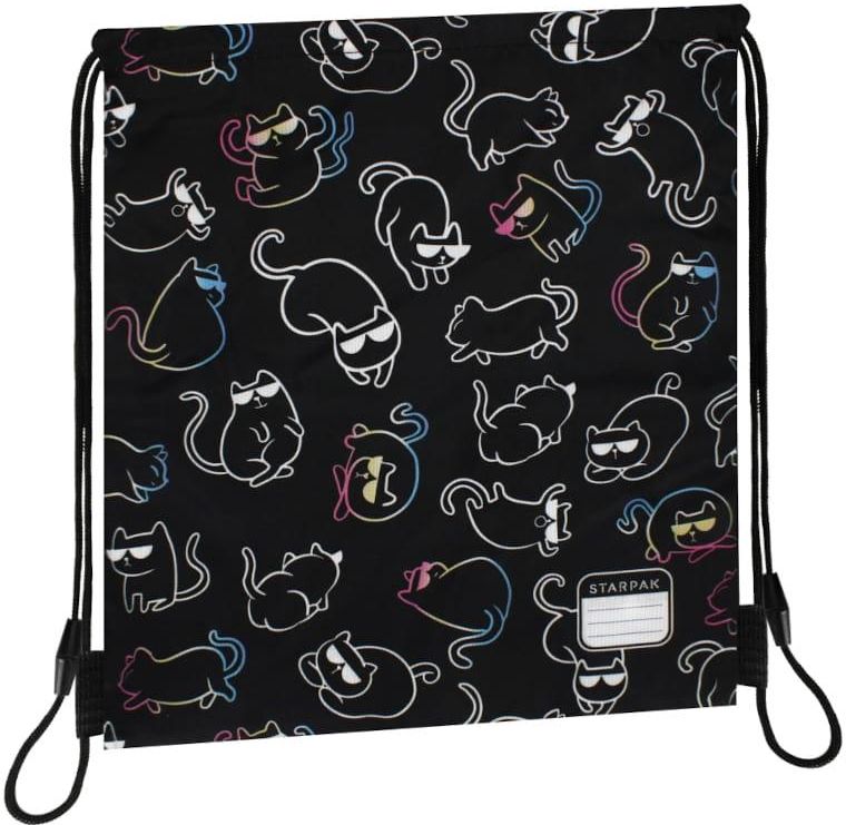 {col/50/} STARPAK Worek na buty KOTKI HOLO Piórnik wykonany jest w czarnym kolorze we wzór z motywem uroczych kotków. Zamykany na sznurek. Zatrzaski przy sznurkach. Wymiary: 38,5 x 33 cm, Wzór: Kotki Holo {col/50/} {col/50/} {col/50/} Niezawodna jakość Przedstawiamy świetny worek gimnastyczny marki …