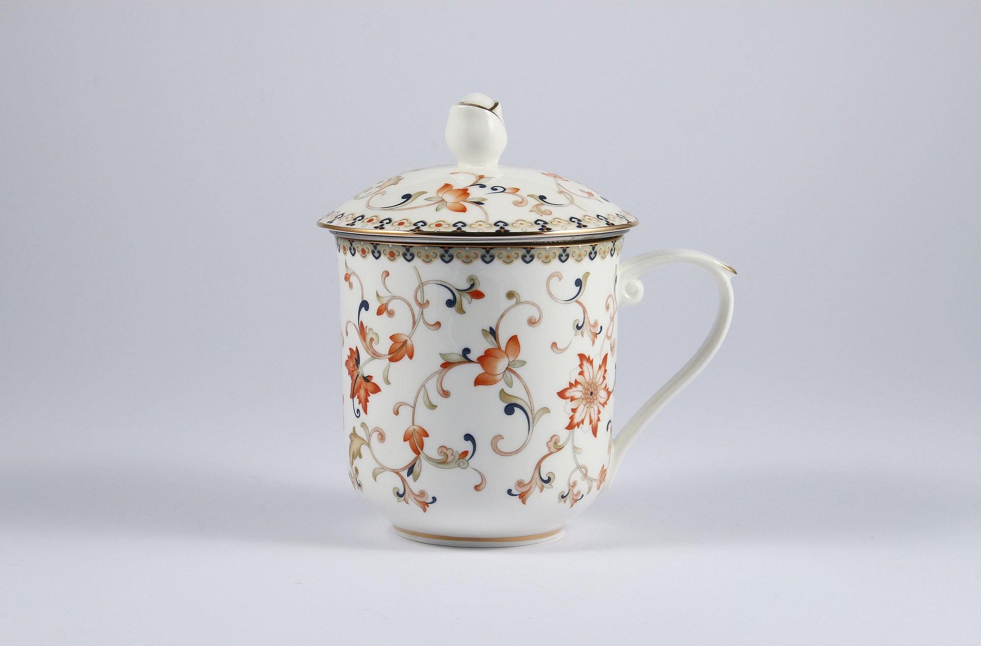 Elegancki kubek z metalowym sitkiem i przykrywką z serii English Collection, firmy MARCO POLO. Kubek oraz przykrywka wykonane są z najwyższej jakości porcelany tzw porcelany kostnej w kolorze białym zdobiony delikatnym, kwiatowym tłoczeniem. Pojemność kubka 400 ml (pojemność liczona po rant kubka).Uroczy zestaw jest koloru białego zdobiony kolorowymi kwiatami ze złotymi zdobieniami na rantach oraz uszku, co sprawia że wpasuje się w każdy styl. Dodatkowym atutem kubka jest uchwyt, wykonany w ciekawym i bardzo wygodnym kształcie. Pokrywka posiada wygodny, elegancki uchwyt, w kształcie róży. Przez zastosowanie zaparzacza, fusy nie przedostają się do naczynia i łatwo go usunąć po zaparzeniu. Dzięki zaparzaczowi już nigdy nie poczujemy w ustach niechcianych fusów, będziemy mogli delektować się czystym, klarownym napojem. Kubek z sitkiem idealnie nadaje się do przygotowywania naparów ziołowych, herbat czarnych, owocowych czy zielonych. Całość zapakowana w ozdobne pudełko to doskonały pomysł na niebanalny prezent urodzinowy, a także podarunek dla szefa czy nauczyciela, również jako podziękowanie. Wzór: 167-4745 Produkt 1 x kubek 1 x przykrywka 1 x sitko 1 x pudełko ozdobne Wymiary kubek pojemność całkowita: 400 ml kubek pojemność użytkowa: około 370 ml kubek średnica: 9 cm kubek wysokość: 9,5 cm wysokość kubka z pokrywką: 14,5 cm przykrywka średnica: 9,7 cm wymiary pudełka 11,5 cm x 10,3 cm x 11 cm h Materiał porcelana stal nierdzewna Użytkowanie dopuszczone do kontaktu z żywnością