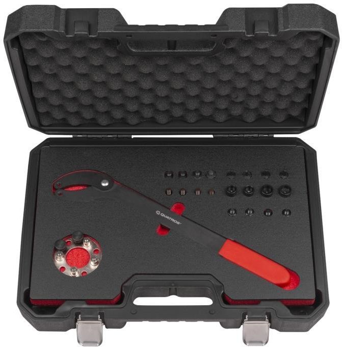 Blokada kół rozrządu VW Audi Zastosowanie: Zestaw przeznaczony do blokowania podczas odkręcania i dokręcania śrub koła pompy oleju i koła wałka rozrządu w pojazdach grupy VAG. Stosowany również do obracania wału korbowego podczas sprawdzania faz rozrządu silnika. Zawartość zestawu: - narzędzie do przytrzymywania koła wałka rozrządu | OEM: T10172-A - adapter do blokowania koła rozrządu | OEM: T10554 - zestaw trzpieni mocujących, O 4.8 mm | OEM: T10172/10 - zestaw trzpieni mocujących, O 6.0 mm | OEM: T10172/9 - zestaw trzpieni mocujących, O 15 mm, długość 12 mm | OEM: T10172/11 - zestaw trzpieni mocujących, O 15 mm, długość 6 mm | OEM: T10172/4 - zestaw trzpieni mocujących, 3-stopniowe, O 5.7 mm, O 9.7 mm, O 11.7 mm | OEM: T10172/1 - zestaw trzpieni mocujących, O 11.6 mm | OEM: T10172/2 - zestaw trzpieni mocujących, M10 | OEM: T10172/7 - zestaw trzpieni mocujących, M12 | OEM: T10172/8 - zestaw trzpieni mocujących, O 13 mm, długość 17 mm | OEM: T10172/5 - zestaw trzpieni mocujących, O 16.1 mm, długość 20 mm | OEM: T10172/6