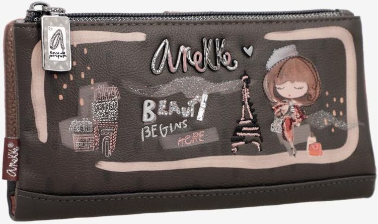 A193 miękki nowoczesny portfel Anekke Mademoiselle z serii Real / Mademoiselle, z wyciąganą wkładka na karty Materiał: Miękki materiał syntetyczny (PU+Poliester+nylon), wnętrze - wytrzymała, elegancka podszewka z tkaniny kaletniczej dobrana kolorystycznie do wzorów serii Mademoiselle Wymiary: 10 cm …