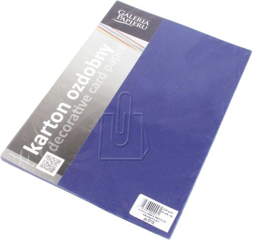 Karton ozdobny Argo Mika granatowy A4 240g Karton Mika to papier najwyższej jakości, który został zaprojektowany z myślą o wymagających projektach. Każdy arkusz w formacie A4 ma gramaturę 240g/m2, co zapewnia mu odpowiednią sztywność i trwałość. Drobna faktura z metalicznymi drobinkami nadaje mu elegancki wygląd, który przyciąga uwagę i dodaje blasku każdemu projektowi. W opakowaniu znajduje się 20 arkuszy, co sprawia, że jest to idealny wybór dla osób szukających materiałów do tworzenia zaproszeń, dyplomów, wizytówek, kartek okolicznościowych i innych wyjątkowych projektów. Karton Mika jest polecany do drukarek laserowych, co pozwala na uzyskanie wyraźnych i precyzyjnych wydruków. Dla tych, którzy potrzebują większej ilości papieru, oferujemy opakowania zawierające 100 arkuszy. Bez wątpienia, Karton Mika to doskonały wybór dla każdej osoby poszukującej papieru o wysokiej jakości, który nada elegancki wygląd każdemu projektowi. Cechy produktu: drobna faktura z metalicznymi drobinkami format A4 gramatura 240g/m2 ilość: 20 arkuszy w opakowaniu polecany do drukarek laserowych kolory granat, dostępne również w opakowaniach po 100 arkuszy karton do przygotowania zaproszeń, dyplomów, wizytówek, kartek okolicznościowych