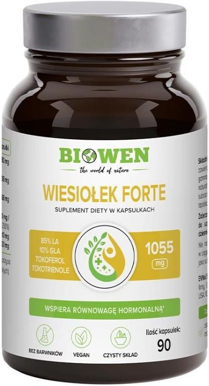 Wiesiołek Forte 90kaps. Biowen Ilość 90kaps. Biowen Suplement diety Wiesiołek Forte 1050 mg Biowen - 90 kapsułek Wiesiołek Forte Biowen to wysokiej jakości suplement diety, bazujący na naturalnym oleju z wiesiołka tłoczonym na zimno. Zamknięty w wegańskiej kapsułce z tapioki, bez dodatku karagenu, …