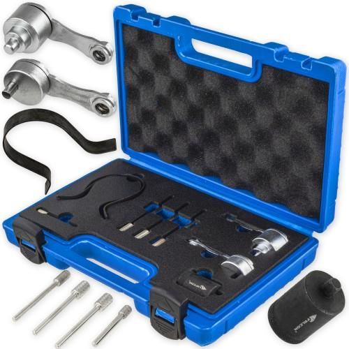 BLOKADA ROZRZĄDU JAGUAR LAND ROVER PSA 2.7 3.0 V6 HDI TDV6 ⭐Profesjonalny zestaw do wymiany i serwisowania paska rozrządu w silnikach wysokoprężnych 2.7 i 3.0 V6 montowanych w pojazdach Jaguar, Land Rover, Citroen, Peugeot. Kompletny zestaw z niezbędnymi narzędziami do blokowania i kontroli synchronizacji. ⬇️ZAWARTOŚĆ ZESTAWU: ✅sworznie blokujące i kontrolne wałka rozrządu ✅narzędzia do blokowania koła zamachowego ✅sworzeń pompy płynu chłodzącego ✅zacisk mocujący pasek ⬇️ZASTOSOWANIE: ⬇️CITROEN ✅C5 III (07-14), C6 (05-09) ⬇️PEUGEOT ✅407 (04-09), 407 Coupe (06-12), 607 (04-11) ⬇️JAGUAR ✅S-Type (04-08), XF (08-20), XJ (10-20), XJ6 (05-10), F-Pace (16-20) ⬇️LAND ROVER ✅Discovery 3 (04-09), Discovery 4 (09-17), Discovery (17-18) ✅Range Rover (12-20), Range Rover Sport (05-20), Range Rover Velar (17-20) ⬇️KODY SILNIKÓW: ✅2.7D / TDV6 / TDVi: 276DT, 7G ✅2.7D HDi: DT17BTED4 (UHZ) ✅3.0D HDi: D20CTED4 (X8Z), DT20C (X8C/X8Z) ✅3.0D SDV6 / TDV6: AJV6D, 306DT, AJ-V6D/306DT ⬇️OEM: ✔️303-1116, 303-1117, 303-1126, 303-1132, 0188-K, 0195-C, 0195-H, 0195-K