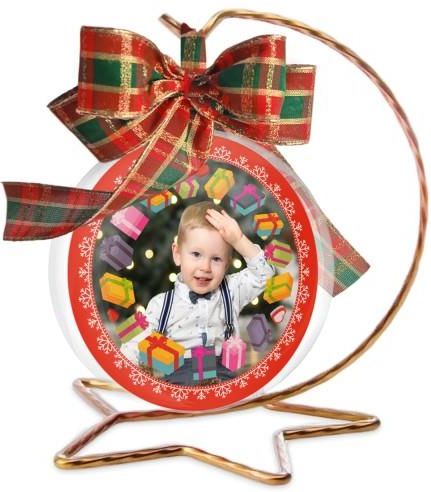 Bombka personalizowana ze zdjęciem złoty STOJAK 10cm Łazy