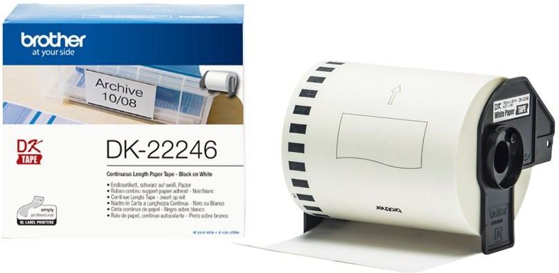 Brother DK-22246 103mm szerokości, 30.48m długości Wysokiej jakości oryginalne etykiety firmy Brother Zapewniają wyraźne i trwałe rezultaty Opis produktu  Brother DK-22246 Niezależnie od tego czy tworzysz etykiety na koperty, pudełka czy półki, możesz cieszyć się elastycznością produkcji nośników różnej długości. Etykiety z taśmy ciągłej DK-22246 firmy Brother posiadają mocny klej, stanowią zatem idealne rozwiązanie zarówno do użytku biurowego jak i magazynowego. Kompatybilne z Brother QL-1050, QL-1050N, QL-1060, QL-1060N, QL-1060NX, QL-1100, QL-1110NWB. Więcej informacji o produkcie Brother DK-22246 Etykiety DK-22246 stanowią idealny nośnik do oznaczania akt osobowych, kopert czy półek. Taśma ciągła pozwoli Ci cieszyć się elastycznością produkcją etykiet różnej długości. Zaprojektowane, aby spełnić Twoje potrzeby związane z etykietowaniem. Uporządkuj swoją przestrzeń w domu lub biurze korzystając oryginalnych etykiet DK-22246 z czarnym nadrukiem na białym tle. Taśma DK-22246 z mocnym klejem została poddana rygorystycznym testom w z zakresie trwałości i niezawodności. Wybierając etykiety DK-22246 firmy Brother (czarny nadruk na białym tle), możesz być pewien, że Twoje urządzenie będzie działało sprawnie, drukując trwałe, krystalicznie czyste i czytelne etykiety.