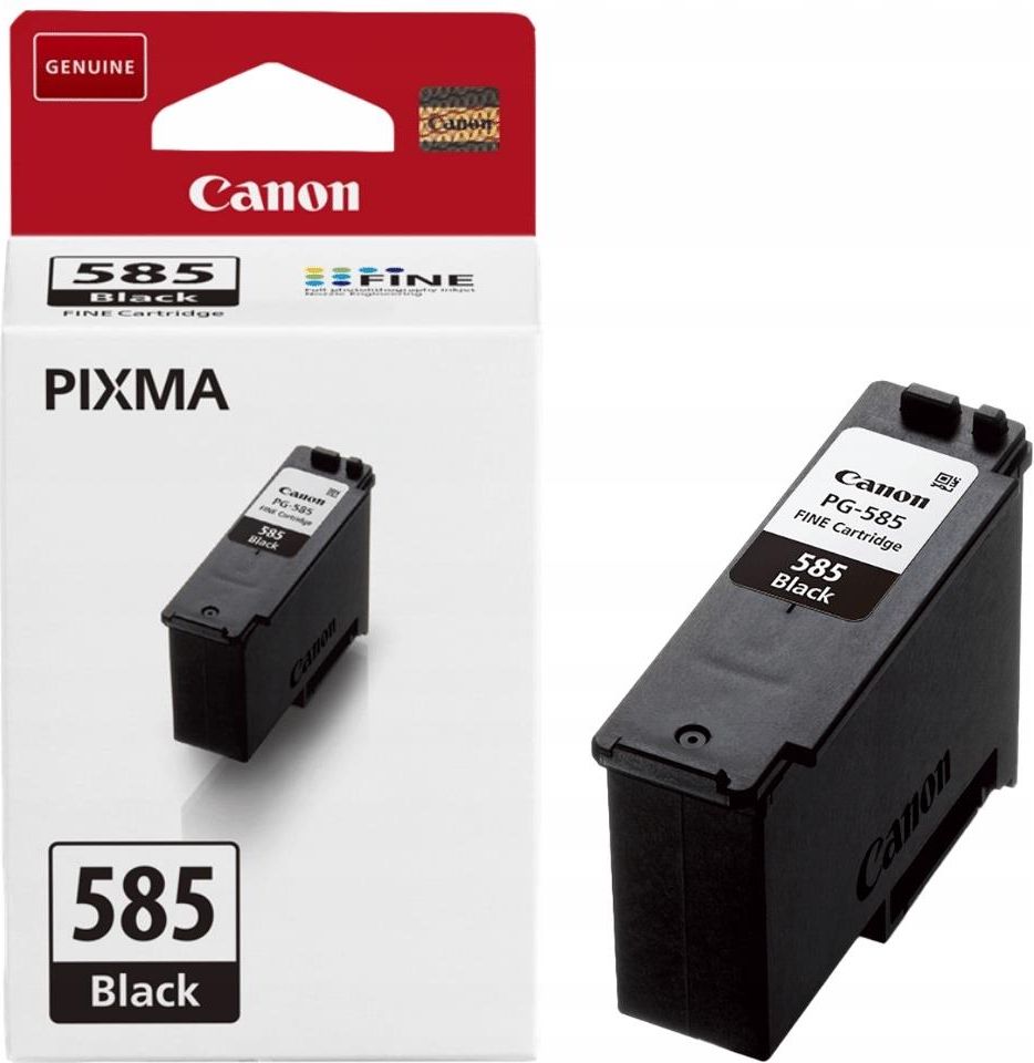Canon PG-585BK Czarny Kaseta z czarnym atramentem pigmentowym do domowego drukowania w wysokiej jakości Znakomite wydruki dokumentów i zdjęć w domu i biurze Czarny atrament pigmentowy umożliwia wydruk nawet 180 stron Oryginalny atrament firmy Canon zapewnia wysokiej jakości wydruki Kaseta z czarnym atramentem Canon PG-585 zapewnia trwały atrament pigmentowy, dzięki któremu można drukować wyraźne dokumenty w domu z wydajnością do 180 stron. Ten czarny atrament jest odporny na działanie zakreślaczy, a nowy sposób przetwarzania przekłada się na wyraźniejsze, trwalsze oraz szybciej i wydajniej generowane wydruki. Atrament jest też wodoodporny, co ułatwia zabezpieczanie dokumentów. Korzyści: Kaseta z czarnym atramentem pozwala wydrukować nawet 180 stron Nowy sposób przetwarzania obejmujący nową głowicę drukującą umożliwia szybkie drukowanie trwałych dokumentów Nowa technologia zapewnia też wyraźniejszy tekst w drukowanych dokumentach Zużyte kasety na toner lub atrament można zwrócić w celu ich ponownego wykorzystania lub recyklingu. Usługa jest bezpłatna, prosta i ekologiczna Zawartość pudełka:  1 kaseta z czarnym atramentem PG-585, 7,3 ml Zgodność:  PIXMA TS7650i PIXMA TS7750i