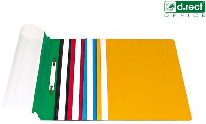 Skoroszyt to podstawowe wyposażenie każdego pracownika biurowego, bez którego trudno wyobrazić sobie sprawne przechowywanie podręcznych dokumentów. Pomaga porządkować i segregować dokumenty w miejscu pracy, doskonale chroniąc je przez zniszczeniem i zabrudzeniem. Szeroka kolorystyka umożliwia łatwą segregację dokumentów i szybką identyfikację zawartości. Jego plusy: pasek do opisu zawartości, przeŸroczysta przednia okładka co umożliwia szybką identyfikację dokumentów.▹ Format A4.▹ Skoroszyt bez perforacji. czarny,D.RECT