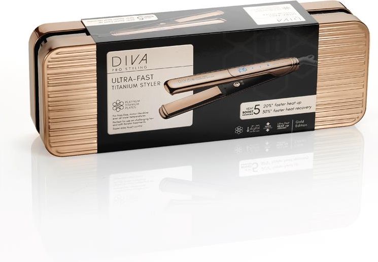 Prostownice Diva Ultra Fast Professional Titanium Straightener to idealny sprzęt do zabiegów keratynowych oraz dla osób, które marzą o efekcie "tafli" na włosach. Tytanowe płytki charakteryzują się niezwykłą, lustrzaną gładkością. Sprawiają wrażenie wręcz "ślizgających" się po włosach, co gwarantuje niesamowity komfort użytkowania. Najnowsza technologia zapewnia intensywne nagrzewanie oraz szybki odzysk ciepła, zapewniając lepsze efekty stylizacyjne, gładkość i połysk – nawet na trudnych do ułożenia włosach. Efekt tafli na włosach murowany! Parametry techniczne • Płytki tytanowe (dł. 10cm szer. 2,6 cm) charakteryzują się niezwykłą, “lustrzaną” gładkością, dzięki której wręcz ślizgają się po włosach oraz zapewniają doskonałą i równomierną wymianę ciepła. • Dotykowy panel sterowania dla wyboru idealnej temperatury (90°C-235°C) dla Twojego rodzaju włosów. • Ultra równomierny system ogrzewania umożliwiający nieprzerwalną pracę i spójną stylizację. • Odzysk temperatury 8°/sek. • Podgrzewanie w 20 sekund do 180°C. • Technologia dalekiej podczerwieni minimalizuje uszkodzenia włosów, zapewnia większą skuteczność i trwałość stylizacji. • Smukła, zaokrąglona obudowa płytek jest również idealna do łatwego tworzenia loków i fal. • Automatyczne wyłączanie po 60 minutach. • Miękki, elastyczny, odporny na temperaturę przewód zasilający z wbudowanym anty rotorem (długość 3m). • Adapter wtyczki UK/EU. Sprzęt posiada adapter wtyczki UK. Jeśli chcesz skorzystać z wtyczki EU, wystarczy, że odkręcisz środkową śrubkę na wtyczce i zdejmiesz obudowę UK. • PREZENT OD DIVA W zestawie czeka na Ciebie PREZENT OD MARKI, którym jest praktyczne, filcowe, ekologiczne etui, pochodzące w 100% z recyklingu i w 100% nadające się do recyklingu. Dzięki niemu zapakowanie i zabezpieczenie sprzętu w podróż czy przechowywanie, nie będzie żadnym problemem. • DalEKOwzroczni Metalowa puszka, w której zapakowany jest produkt, wykonana jest z materiału, który w 100% pochodzi z recyklingu (puszki po żywności) i w 100% nadaje się do recyklingu. Diva Pro Styling to marka powołana do życia w 2007 roku w Wielkiej Brytanii, która szybko stała się liderem wśród profesjonalnych marek sprzętu fryzjerskiego do suszenia i stylizacji włosów. Innowacyjne produkty, dzięki zastosowaniu najnowocześniejszych rozwiązań technologicznych, są kontynuacją procesu pielęgnacyjnego włosów, a przede wszystkim zapewniają komfort użycia, wytrzymałość, wydajność oraz wiele możliwości stylizacji. Zaprojektowane tak by skracać czas pracy fryzjerów, a jednocześnie podnosić jej komfort. Uwolnij swoją kreatywną energię z Diva Pro Styling i Twórz niesamowite fryzury już dziś.