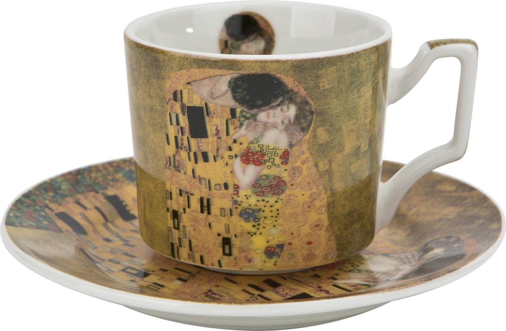 Zestaw 2 filiżanek do espresso ze spodkiem z serii THE KISS by Gustav Klimt wchodząca w skład serii Art Gallery. Linia wykonana z białej porcelany wewnątrz zdobionej reprodukcją obrazu "Pocałunek" Gustava Klimta. Ciepła paleta brązu w połączeniu z połyskującym złotem nadaje całości wyjątkowo …