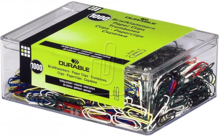 Spinacze Durable o długości 26mm wykonane z metalu, który został polakierowany kolorowym tworzywem. Przydatne do spinania dokumentów w biurze i nie tylko. Ekonomiczne opakowanie zawierające 1000 sztuk.