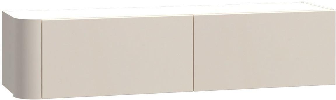 Szafka wisząca Breathtaker, od producenta Meble Wójcik, stanowi elegancki dodatek do wystroju wnętrza, ale pełni także rolę funkcjonalnego mebla do przechowywania i eksponowania wybranych dekoracji. Szafka pomaga również optycznie powiększyć i rozświetlić pomieszczenie, unikając efektu przytłoczenia aranżacji. Jakie zalety posiada szafka wisząca na ścianę Breathtaker? Szafka na ścianę z kolekcji Breathtaker została wykonana płyty meblowej odpornej na uszkodzenia mechaniczne i niewymagającej w pielęgnacji. Jej bryła jest prosta i minimalistyczna, a dzięki subtelnie zaokrąglonej krawędzi pomaga w urządzeniu harmonijnego, stonowanego wnętrza. Mebel oferuje użytkownikowi miejsce na dekoracje i pamiątki, a także dwie wnęki zamknięte, w których można trzymać między innymi dokumenty czy książki. Drzwiczki szafki uchylają się ku górze, wykorzystując przy tym system bezuchwytowy, który podkreśla nowoczesną linię mebla. Czym wyróżnia się szafka na ścianę Breathtaker? Prezentowana nowoczesna szafka pełni rolę półki ściennej oraz mebla do dyskretnego przechowywania. Nie zajmuje miejsca podłogowego, dzięki czemu ma też lekką formę. Dodatkowym atutem jest jej jasne wybarwienie na dekor piaskowy, który odbija światło, optycznie powiększając pomieszczenie. Szafka na książki ma gładką bryłę bez wystających uchwytów meblowych. Jest też jednorodnie wykończona, co nadaje jej elegancki wygląd. Stanowi zatem gustowne tło dla bardziej wyrazistych dodatków dekoracyjnych. Łatwo łączy się też z intensywniejszymi, ciemniejszymi kolorami innych elementów wyposażenia. Wymiary szafki Szerokość: 128,6 cm Głębokość: 34 cm Wysokość: 30,1 cm