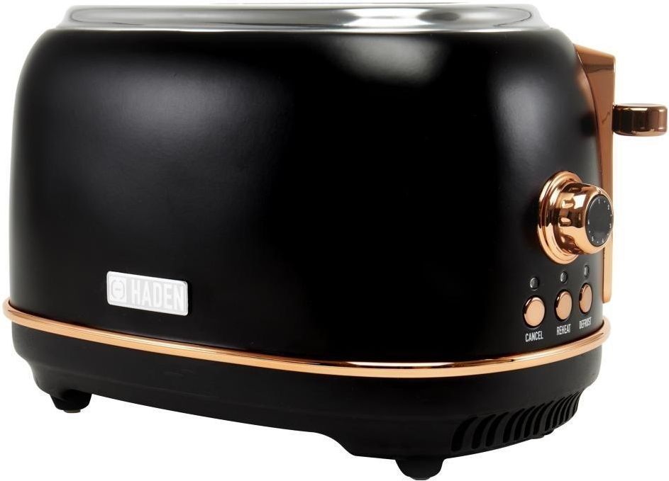 Toster HeritageToster dwuszczelinowy ze stali nierdzewnej pozwoli szybko przygotować tosty. Dzięki szerokim szczelinom można umieścić w nim nawet grube kromki chleba, a funkcja centrowania tostów sprawi, że zawsze będą równomiernie przypieczone. Urządzenie oferuje 6 stopni sterowania opiekaniem. Ponadto ma funkcje rozmrażania, odgrzewania i przerwania pracy. Po zakończeniu pracy urządzenie samo się wyłączy. W tosterze znajduje się tacka na okruchy, która ułatwia zachowanie czystości oraz schowek na przewód. Antypoślizgowe, gumowe nóżki zapewniają stabilność urządzenia. Informacje o produkcie Funkcja podgrzewania Tak Funkcja rozmrażania Tak Funkcja STOP Tak Ręczne wysunięcie Tak Regulacja stopnia zarumienienia Tak Pojemność 2 tosty Moc 815 W Funkcje specjalne Funkcja centrowania tostów 6 stopni opiekania Tacka na okruchy Podstawa antypoślizgowa Tak Długość przewodu zasilającego 0.75 m Kolor czarny miedziany Wymiary 297 x 187 x 189 mm Waga 1.35 kg