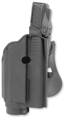Kabura na broń krótką Level 2 Roto Paddle Holster wyprodukowana przez renomowaną izraelską firmę IMI Defense. Wersja TLH z możliwością przenoszenia pistoletu z zamontowaną latarką taktyczną lub laserowym wskaźnikiem celu. Seria Level 2 wyposażona jest w blokadę trzymającą koniec zamka - jej zwolnienie odbywa się poprzez naciśnięcie kciukiem dużego przycisku po lewej stronie kabury. Całość wykonana została z najwyższej jakości lekkiego a zarazem wytrzymałego polimeru przy użyciu najbardziej zaawansowanej technologii produkcji. Produkty marki IMI Defense zapewniają łatwość użycia, trwałość i komfort. Kabura wyposażona jest w "płetwę" mocującą do pasa i zapobiegającą jej wypadnięciu. Szlufka na pasek o maksymalnej szerokości wynoszącej 55 mm. W modelu Roto istnieje możliwość regulacji położenia kabury względem "płetwy" a przez to kąta położenia broni. Po zakończeniu regulacji kaburę należy dokręcić kluczem imbusowym, który otrzymujemy w zestawie. Broń mocowana jest na wcisk, jednakże zastosowany materiał i jego faktura zapobiegają porysowaniu powierzchni. Cechy i zalety: - Wygodny, odpowiednio wyprofilowany kształt - Blokada zamka zwalniana przyciskiem - Miejsce na latarkę taktyczną lub laserowy wskaźnik celu - Broń mocowana na wcisk - Bardzo szybkie dobycie - Obracana w zakresie 360 stopni co umożliwia przenoszenie broni na wiele sposobów - Wykonana z wytrzymałego polimeru - Regulacja za pomocą dołączonego do zestawu klucza imbusowego - Zaprojektowana dla wojska i policji, doskonała również dla osób cywilnych - Kabura dla osób praworęcznych - Kolor: czarny - Waga: 200 g Pasujące modele latarek / celowników laserowych: - Insight M3/M6 - Streamlight TLR1/TLR2 (w tym TLR-2G, TLR-G, TLR-HL, TLR-R) - Surefire X200/X300 - SIG SAUER STL-900L Pasuje do: Glock 17/19/22/23/25/31/32/45 Wyprodukowano w Izraelu.