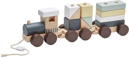Drewniany pociąg do ciągnięcia z serii NEO, z elementami malowanymi oraz w kolorze naturalnego drewna. Drewniany pociąg do ciągnięcia z serii NEO, z elementami malowanymi oraz w kolorze naturalnego drewna. Pociąg ma jedną lokomotywę i dwa wagoniki, na których można układać klocki w różnych konfiguracjach. Informacje dodatkowe Długość x szerokość x wysokość: 36 x 7,5 x 11 cm Materiał Pociąg: drewno kauczukowe. Oś: stal nierdzewna. Sznurek: bawełna. Rzep: nylon. Certyfikaty: EN71, wykonane z drewna z certyfikatem FSC, oznaczenie CE Rekomendowany wiek dziecka: 12M + Instrukcja czyszczenia Czyść wilgotną ściereczką. Wytrzyj do sucha czystą szmatką. Koła można smarować olejem parafinowym, dopuszczonym do kontaktu z żywnością, lub olejem lnianym.