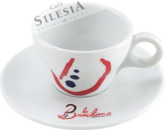 Filiżanka do espresso, z grubej porcelany, o pojemności 80ml z logo palarni LA BRASILIANA. Wyprodukowana przez fabrykę FAC SpA / Porcellane ACF W komplecie wraz ze spodeczkiem.