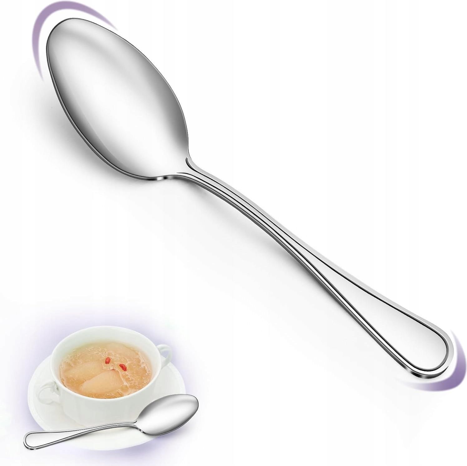 Zestaw Łyżek ze Stali Nierdzewnej (24 sztuki) Opis Produktu 24-Elementowy Zestaw Łyżek Ten zestaw zawiera 24 łyżki ze stali nierdzewnej, które idealnie sprawdzą się do codziennego użytku w większości gospodarstw domowych. Zestaw stanowi również świetne rozwiązanie do restauracji, hoteli, na wesela i inne okazje. W razie potrzeby może służyć jako zamiennik. 🔹 Wysokiej Jakości Stal Nierdzewna Łyżki zostały wykonane z trwałej, pogrubionej stali nierdzewnej, dopuszczonej do kontaktu z żywnością. Dzięki temu są odporne na korozję, nierdzewne i wyjątkowo wytrzymałe. Powierzchnia łyżek jest polerowana na wysoki połysk, a krawędzie są gładkie i bezpieczne w użytkowaniu. Co więcej, łyżki nadają się do mycia w zmywarce, co ułatwia ich pielęgnację. 🎨 Nowoczesny Design Łyżki wyróżniają się nowoczesnym, minimalistycznym wzornictwem. Mają prostą linię i jednoczęściową konstrukcję, co nadaje im elegancki wygląd. Ergonomicznie wyprofilowany uchwyt jest szeroki i gruby, co zapewnia komfortowe trzymanie i wygodę podczas użytkowania. 🍽️ Wszechstronne Zastosowanie Te uniwersalne łyżki są idealne zarówno do śniadań, jak i popołudniowej herbaty. Dzięki szerokiej główce doskonale nadają się do podawania zup, jogurtów, płatków owsianych i innych potraw. Świetnie sprawdzą się w domu, restauracji, podczas imprez czy pikników na świeżym powietrzu. Specyfikacja Techniczna Materiał: Stal nierdzewna (odporna na korozję) Wykończenie: Polerowane na lustro Długość: 20 cm Szerokość główki: 4,5 cm Ilość w zestawie: 24 sztuki Możliwość mycia w zmywarce: Tak Dodaj do swojego koszyka i ciesz się wysokiej jakości, eleganckim zestawem łyżek idealnym na każdą okazję!