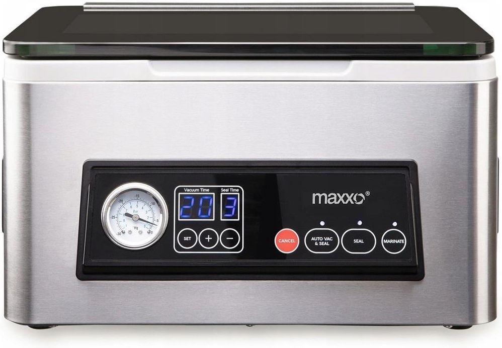 Profesjonalna Zgrzewarka Komorowa do Pakowania Żywności MAXXO Seria 40 Automatyczne i ręczne pakowanie próżniowe z podwójnym bezpiecznym zgrzewem Profesjonalna i wysoce wydajna sprężarka 72l / min Maksymalna moc ssania: 950 mbar Możliwość pakowania nie tylko suchych, ale również mokrych i płynnych potraw: zup/sosów Uchwyt zaciskowy do mocowania folii w komorze Maksymalna szerokość rolki/ folii: 300 mm Specjalny program do marynowania Poczwórna mocna pompa próżniowa, podwójny zgrzew Szczelna komora z przezroczystą hartowaną pokrywą szklaną Pojemność komory próżniowej: 4 litry 2 cyfrowe wyświetlacze do łatwiejszej obsługi urządzenia Szeroki zakres regulowania czasu próżni i zgrzewania Moc zgrzewarki: 300 W 30 WORKÓW MOLETOWANYCH 28 x 33 cm Zgrzewarka wyposażona jest w 4 mocne pompy o wydajności 72 l / min i podwójnym skręcie. Urządzenie wykonane jest ze stali nierdzewnej, dzięki czemu jest odporne na uszkodzenia mechaniczne i łatwe w utrzymaniu. Komora próżniowa została zaprojektowana w celu zoptymalizowania miejsca wewnątrz urządzenia. Klapa komory pakowarki została wykonana z przezroczystego hartowanego szkła. Pakowarka umożliwia zgrzewanie dużej ilości żywności w jednym opakowaniu, znacznie więcej niż inne maszyny próżniowe. Szerokość listwy zgrzewającej pozwala na użycie rolek folii próżniowej o rozmiarze nawet do 30 cm szerokości. Zgrzewarka komorowa nadaje się do użytku komercyjnego w HORECA, dla rzeźników, myśliwych, sklepów spożywczych, rybaków, restauracji, rybiarni. Zgrzewarka nadaje się do użytkowania zarówno w firmie, jak i w domu. Dane techniczne Producent: MAXXO Model: Seria 40 Wydajność sprężarki: 72l / min; 950 mbar. Dokładna e-instrukcja obsługi w języku polskim Wymiary urządzenia: 34,5cm x 28,5 cm x 22,5 cm Waga urządzenia: 8 kg Maksymalna szerokość rolki i folii – 30 cm Moc zgrzewarki: 300 W Zasilanie z sieci Zestaw zawiera: Zgrzewarka Maxxo Seria 40 30 worków moletowanych 28 x 33cm Bezpieczny ręczny odcinacz do folii W komplecie ze zgrzewarką próżniową, otrzymujesz zapas folii moletowanej ze specjalną powłoką karbowaną, która dedykowana jest do profesjonalnego pakowania jedzenia w pakowarkach listwowych. Folie wyprodukowane są z folii poliamidowo-polietylenowej, z wytłoczoną powłoką w kształcie siatki. Karbowana powłoka sprawia, że w trakcie jej zgrzewania, warstwy się ze sobą nie stykają, pozostawiając kanaliki wymagane do odessania całego powietrza i utworzenia całkowitej próżni. Rewolucyjny sposób przechowywania żywności w próżni – niemalże bez dostępu powietrza. W ten sposób nawet pięciokrotnie wydłużysz okres ważności pakowanych produktów, gwarantując naturalną świeżość i jakość. Foliarka nadaje się również, do przygotowania jedzenia metodą Sous Vide - precyzyjne gotowanie w próżni.