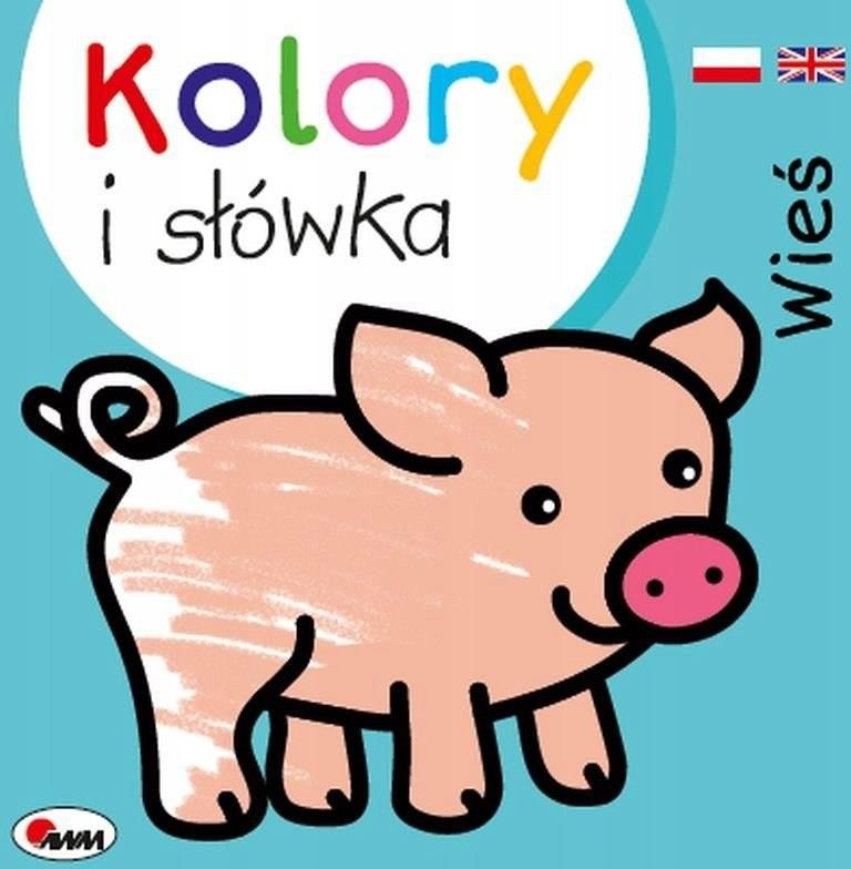 Kolorowanka dla Malucha Wieś Kolory i Słówka Pierwsza kolorowanka twojego dziecka – rysunki zwierząt wiejskich o prostych kształtach i wyraźnych konturach. Możliwość różnorodnej zabawy – kolorowania według wzoru lub według własnego pomysłu. Angielskie słówka – przystępny kontakt z językiem obcym. Książeczka zawiera ilustracje zwierząt leśnych z grubym obrysem, dzięki czemu młodsze dzieci z łatwością wypełnią je kolorem. Mali artyści odnajdą tu m.in. Lisa, sowę czy jelenia i poznają ich angielskie nazwy. Rysunki mogą pokolorować zgodnie z barwnymi podpowiedziami lub w sposób dowolny. Książka doskonali sprawność manualną wzbogaca słownictwo uczy angielskich słówek trenuje koncentrację rozwija wyobraźnię Kolory i słówka to seria kolorowanek dla najmłodszych dzieci z rysunkami zwierząt i pojazdów umieszczonymi na barwnych tłach. Przyjazna szata graficzna zachęca do kreatywnej zabawy. Format: 19 x 19 cm Ilość Stron : 12