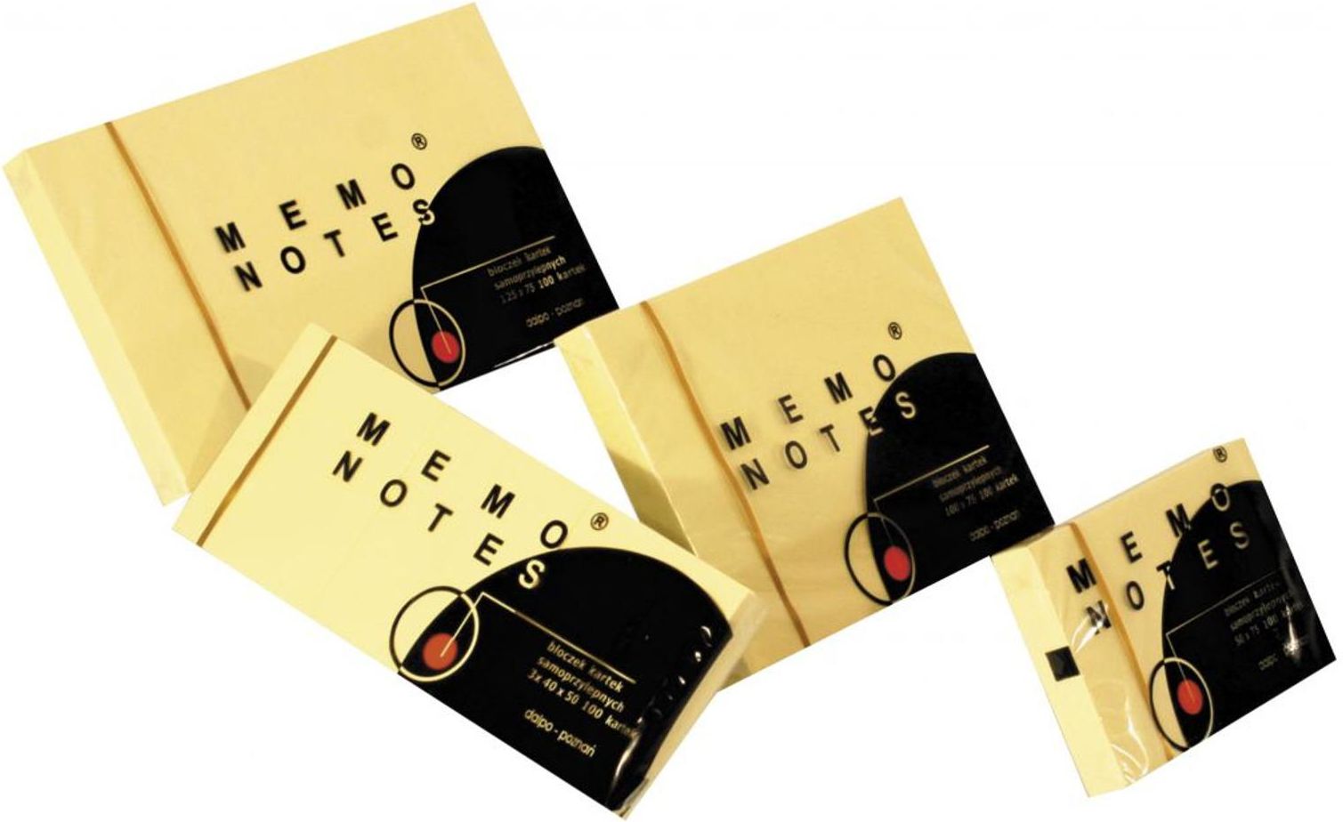 Notes samoprzylepny 75x105mm. Notesy samoprzylepne MEMO NOTES wykonane są z wysokiej jakości papieru z nałożonym klejem, który umożliwia wielokrotne przyklejania i odlepianie karteczek do różnych powierzchni. Notesy dostępne są w różnych rozmiarach, co pozwala dopasować wielkość karteczki do ilości zapisywanych informacji oraz miejsca, gdzie zostanie przyklejona. Wymiary: 75x105 mm Ilość kartek: 100