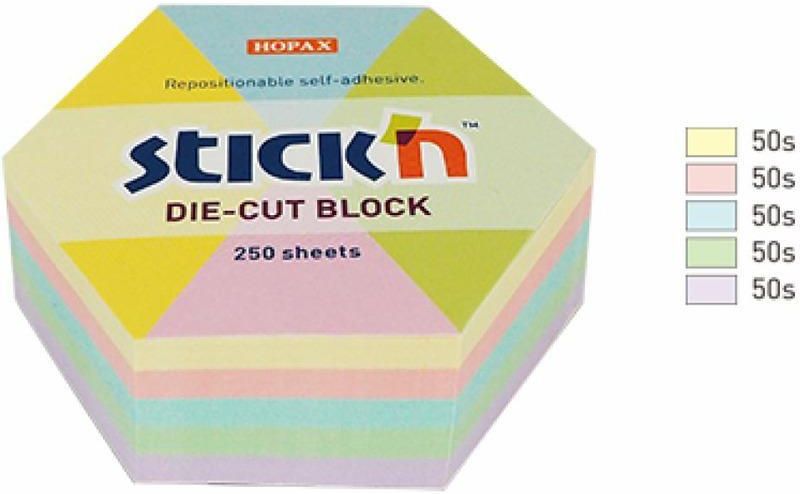 Notes samoprzylepny kostka w ksztacie szeciokta o wymiarach 61 x 70 mm. Zawiera miks 5 kolorw pastelowych, po 50 karteczek w kolorze tym, jasnorowym, niebieskim, zielonym i fioletowym. W sumie bloczek liczy 250 karteczek. Klej naoony na jednym z brzegw karteczki. Karteczki samoprzylepne idealne s …