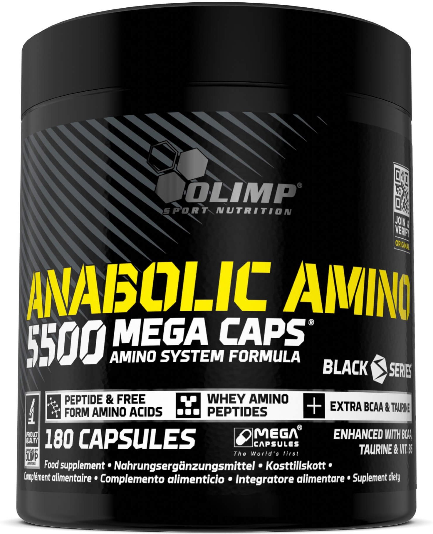 Olimp Anabolic Amino 5500 Mega Caps® – wysokiej jakości aminokwasy w kapsułkachZastanawiasz się, jak w prosty i szybki sposób uzupełnić codzienną dietę w wysokiej jakości aminokwasy? Sięgnij po ceniony wśród sportowców i osób aktywnych fizycznie suplement, który pozwoli dostarczyć każdego dnia solidną porcję wspomnianych składników. Oto Anabolic Amino 5500 Mega Caps® marki Olimp Sport Nutrition! - preparat w formie łatwych do połknięcia kapsułek, z których każda zawiera kompleks wysokiej jakości wolnych aminokwasów. Suplement diety powstał w nowoczesnym Ośrodku Badawczo-Rozwojowym firmy farmaceutycznej Olimp Laboratories na podstawie światowych standardów produkcji, gwarantujących jakość i bezpieczeństwo stosowania.Olimp Anabolic Amino 5500 Mega Caps® - składW składzie suplementu diety Olimp Anabolic Amino 5500 Mega Caps® mamy wieloskładnikowy kompleks peptydów i wolnych aminokwasów w łatwo przyswajalnej formie, dodatkowo wzbogacony o taurynę i witaminę B6. Ta skoncentrowana dawka aminokwasów białkowych (te, które budują białka) zagwarantuje organizmowi komfortowe warunki i niezbędne surowce do syntezy nowych cząsteczek białkowych. Warto również nadmienić, że połowa składników zawartych w Olimp Anabolic Amino 5500 Mega Caps® ma egzogenny charakter! Oznacza to, że nasz organizm nie jest zdolny do ich samodzielnej produkcji, dlatego musimy wykorzystywać zewnętrzne źródła, aby dostarczyć mu wspomniane aminokwasy. W tej sytuacji, obok zróżnicowanej diety jednym z rozwiązań są suplementy o wysokim stopniu przyswajalności. Dzięki temu organizm zyskuje niezbędną porcję potrzebnych składników aktywnych, co sprzyja utrzymaniu prawidłowego bilansu aminokwasów.Pojemne kapsułki Mega Caps® w Olimp Anabolic Amino 5500Nowatorska technologia Mega Caps®, która jest jednym z flagowych punktów marki Olimp Sport Nutrition, umożliwia wykorzystanie solidnych porcji poszczególnych składników. Jeśli chodzi o białko, w przypadku Olimp Anabolic Amino 5500 Mega Caps® zdecydowano się użyć hydrolizowanych protein serwatki, które gwarantują bogatą zawartość aminokwasów w każdej porcji produktu. Wykorzystana frakcja proteinowa odznacza się wysoką przyswajalnością, co determinuje dużą skuteczność popularnego wśród profesjonalnych sportowców produktu marki Olimp Sport Nutrition.Olimp Anabolic Amino 5500 Mega Caps® pomaga zatem w:uzupełnieniu codziennej diety o aminokwasy i białko,budowaniu masy mięśniowej1,zmniejszeniu uczucia zmęczenia i znużenia (witamina B6),utrzymaniu prawidłowego metabolizmu energetycznego (witamina B6),utrzymaniu prawidłowego metabolizmu białka i glikogenu (witamina B6).Jak stosować Olimp Anabolic Amino 5500 Mega Caps®?Suplement diety Olimp Anabolic Amino 5500 Mega Caps® to produkt polecany przede wszystkim miłośnikom energicznych treningów, które nawet na moment nie dają chwili wytchnienia. Skoncentrowana dawka aminokwasów z pełnowartościowego białka stanowi idealne wsparcie dla każdego zawodnika, który realnie myśli o sukcesie. Producent zaleca, by pojedyncza porcja, na którą przypada 6 kapsułek, była stosowana 2 razy w ciągu dnia. Nie można zapominać o zdrowym trybie życia i zróżnicowanej diecie.Olimp Anabolic Amino 5500 Mega Caps® – zacznij działać, tu i teraz!