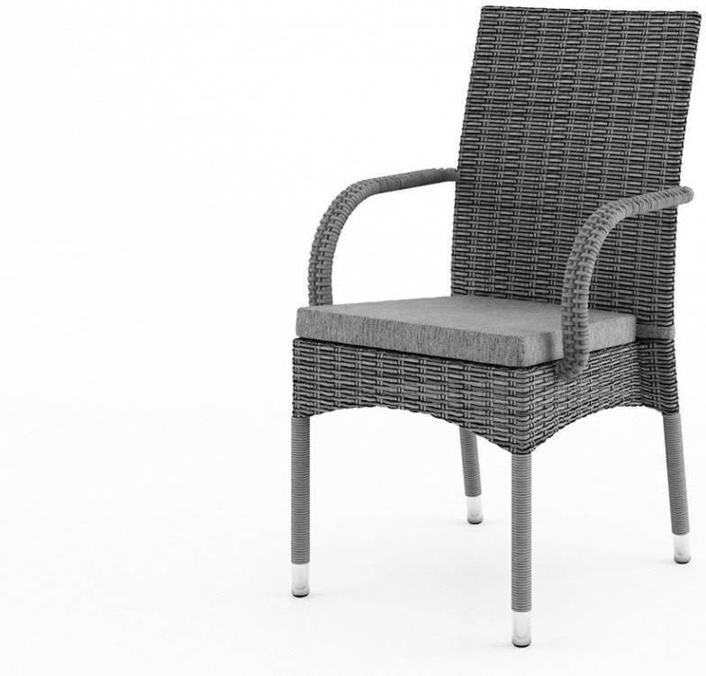 Krzesło TRAMONTO to połączenie wygody, funkcjonalności i prostoty. Dzięki podłokietnikom można swobodnie oprzeć ręce, a poduszki zapewnią wygodę na długie godziny. Wyjątkowa konstrukcja krzeseł TRAMONTO pozwala bez problemu ułożyć je jedno na drugim. Trzy kolory do wyboru: biały, piaskowy i szary. Materiały: stelaż - spawane, powlekane proszkowo aluminium, zapewniające lekkość, wytrzymałość oraz całkowitą odporność na rdzę plecionka - polietylen – materiał całkowicie odporny na działanie zmiennych warunków pogodowych, takich jak promieniowanie UV, wilgoć oraz skrajne temperatury, zarówno w zimie jaki i w lecie poszewki – poliester 300g impregnowany teflonem, który nie wchłania brudu i wody poduszki - poduszka siedziskowa - pianka tapicerska o gęstości T30, odporna na obciążenia i odkształcenia o grubości 4cm
