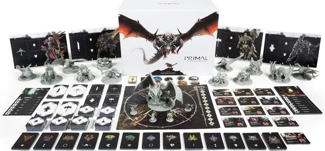 Informacja o wysyłce: Uprzejmie informujemy, że gra PRIMAL ze względu na swoje wymiary nie mieści się do paczkomatu. Primal: The Awakening to kooperacyjna gra planszowa z walkami z bossami dla 1-4 graczy, charakteryzująca się walką opartą na kartach, możliwością personalizacji postaci oraz niezwykle szczegółowymi, wielkoformatowymi miniaturami. Gra podstawowa to wszystko, czego potrzebujesz, aby rozpocząć przygodę w świecie Thyrei. Wybierz jedną z 4 unikalnych postaci, wyrusz na ponad 30 łowów, twórz ekwipunek z 6 różnych elementów i rozegraj kampanię, aby odkryć tajemnicę Przebudzenia . Twoja przygoda zaczyna się tutaj. Zawartość: 1 plansza Walki 1 plansza Wyprawy 1 Instrukcja (122 strony) 1 Księga Kampanii (126 stron) 1 notes kart Kampanii 1 notes kart Postaci 18 kart Kuźni 3 karty Chaty Zielarki 5 kart Pomocy 34 separatory 4 plansze Łowców 4 figurki Łowców 84 karty Broni 176 kart Akcji Łowców 24 karty Mistrzostwa 8 kart Ran 14 plansz Potworów 13 figurek Potworów 77 kart Postawy 39 kart Opresji 15 kart Celów 242 karty Zachowania 16 kart Skaz 5 kart Roju 5 kart Dudnienia 1 koperta 2 karty Przebudzenia 24 karty Wyniszczenia 30 kart Wyprawy 76 kart Hełmu 144 karty Przedmiotu 25 kart Nagrody 76 kart Zbroi 72 karty Eliksiru 16 zestawów Specjalnych 234 żetony i znaczniki Gra znajduje się w dużym pudełku (471x341x225 mm) Producent/osoba odpowiedzialna za bezpieczeństwo produktu Portal Games Sp. z o.o. Ul.Sienkiewicza 13 44-190 Knurów portal@portalgames.pl 323348538