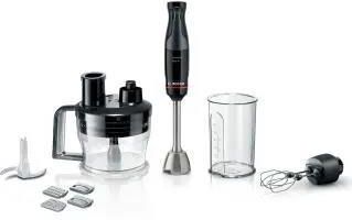 Funkcja Turbo:nie;Funkcje:miksowanie, rozdrabnianie (siekanie), ubijanie piany, krojenie;Gwarancja:24 miesiące;Funkcje dodatkowe:szybki montaż akcesoriów;Kolor:czarny;Moc silnika:od 1000 do 1200 W;Moc silnika:1000 W;Możliwość mycia końcówek w zmywarce:tak;Nóż:4-ramienny;Praca pulsacyjna:nie;Przystawki:rozdrabniacz, trzepaczka;Regulacja obrotów:mechaniczna-płynna;Seria:ErgoMaster;Seria:Bosch ErgoMaster;Waga urządzenia:1,87 kg;Wariantowanie:Bosch MSM4B;Wariantowanie wyposażenie (nie uzupełniać):rozdrabniacz, końcówka do ubijania, pojemnik;Wykonanie korpusu:tworzywo sztuczne;Wykonanie misy roboczej:tworzywo sztuczne;Wykonanie stopy:stal nierdzewna;Końcówki do:miksowania, ubijania;Przystawki:rozdrabniacz;Tarcze do:krojenia/ścierania na cienko, krojenia/ścierania na grubo, wiórek cienkich, wiórek grubych;Pozostałe:pojemnik do miksowania;Wyposażenie:instrukcja obsługi w języku polskim;Zasilanie:sieciowe 230-240 V 50/60 Hz