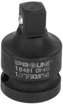 ADAPTER UDAROWY Cr-Mo 1/2" Gniazdo -3/8 trzpień, PROLINE Proline Umożliwia współpracę nasadek, grzechotek i innych akcesoriów o różnych wymiarach